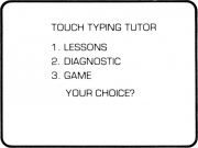 22:13, 20 October 2022 Touch Typing Tutor - Selection Screen.png (file) 81 KB Amycjgrace This is the Touch Typing Tutor selection screen for the TI-99/4A computer software of the same name. 1
