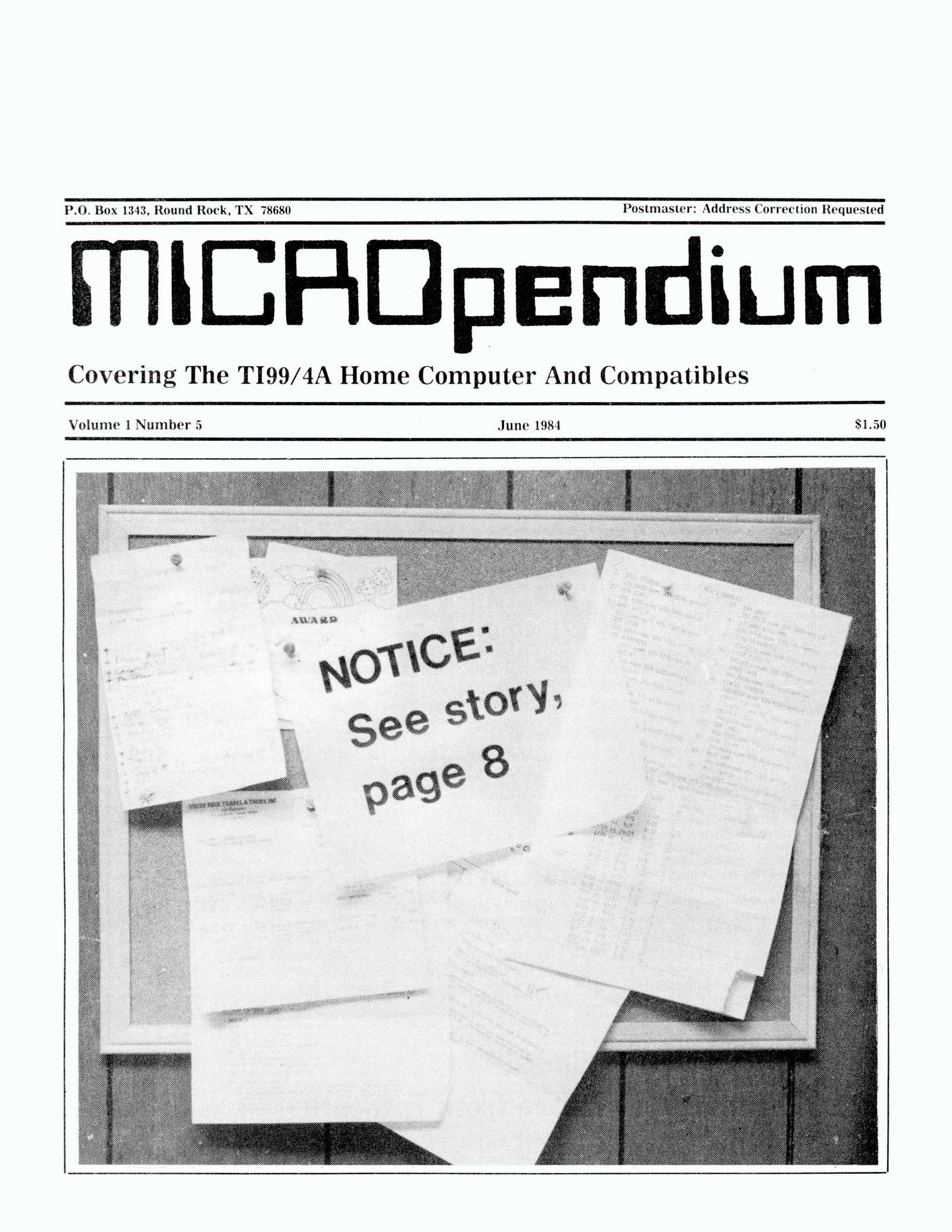 This is the front cover for Micropendium Volume 1 Number 5, June 1984.