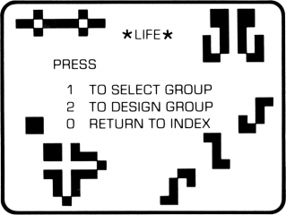 This is the "Life" selection screen from the TI-99/4 and TI-99/4A software program Video-Graphs.