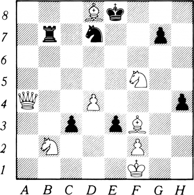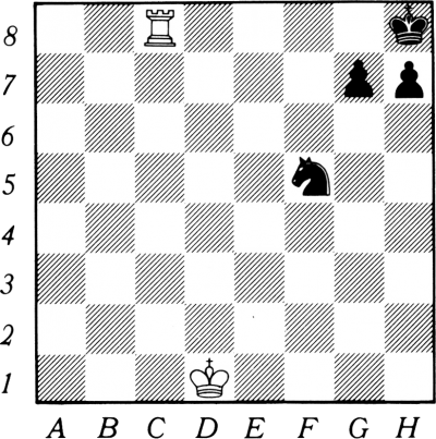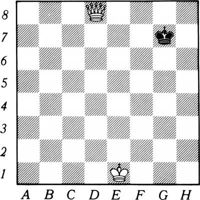 Looking at the board from White's side we label the vertical columns A through H. These columns are called files. The horizontal rows, called ranks, are labeled 1 through 8, with the first rank being nearest to White and the eighth rank nearest to Black. This method of notation, called algebraic notation, enables us to identify each square of the board by its unique file-rank (column-row) coordinates, such as A3 or ES. It also allows us to record the moves of a game and to describe what is happening in a game situation.
