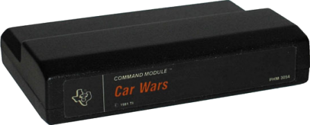 Car Wars was programmed by Jim Dramis (creator of both Munch Man and Parsec). It was released in November of 1981 and distributed on Solid State SoftwareTM Command Module. Car Wars originally sold for $39.95 (USD).