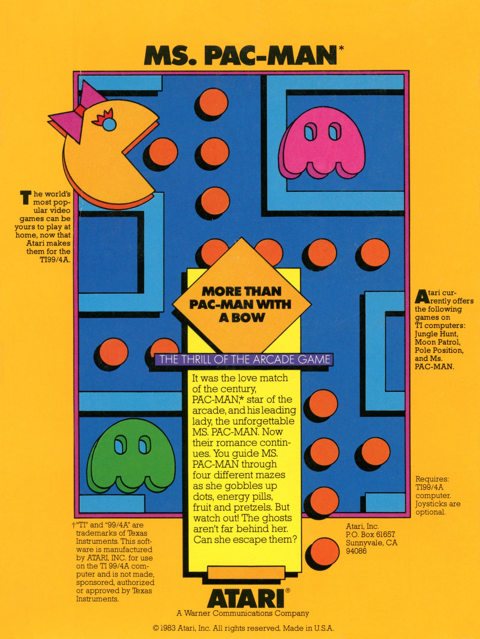 | current | 16:34, 8 November 2022 | 3,000 × 4,000 (6.65 MB) | Amycjgrace (talk | contribs) | This is the back of the retail packaging for the Atarisoft created video game Ms. Pac-Man for the TI-99/4A home computer sytem. |