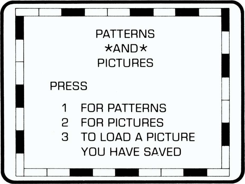 This is the main Selection screen for the TI-99/4 and TI-99/4A computer program Video-Graphs.